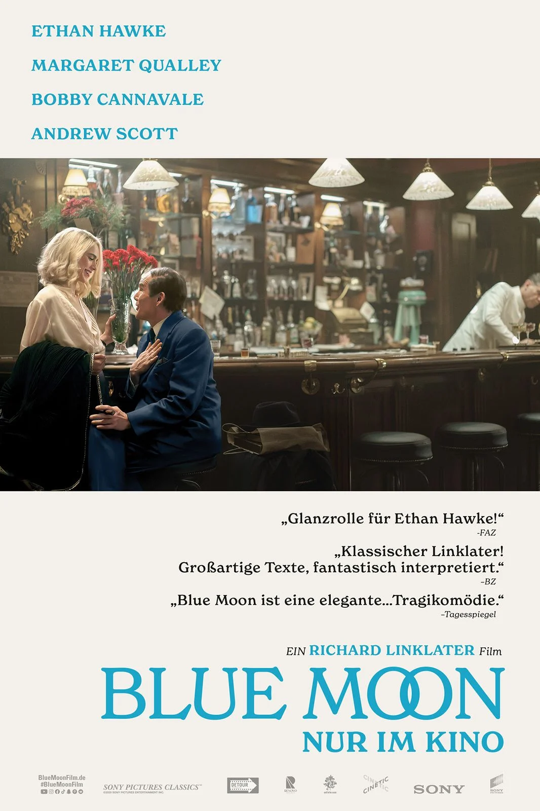 BLUE MOON besticht mit beeindruckenden Darbietungen von Ethan Hawke („Leave The World Behind“) als Lorenz Hart, Andrew Scott („All of Us Strangers“) als Richard Rodgers, Margaret Qualley („The Substance“) als Harts Schützling Elizabeth und Bobby Cannavale („Standing Up“) als Barkeeper, Freund und Vertrauter von Hart.